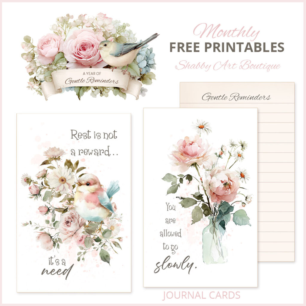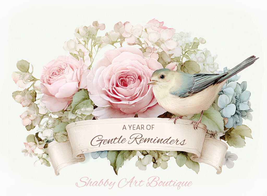 If you’d like to share your projects, happy mail, or journal pages made with A Year of Gentle Reminders, I warmly invite you to post them in my Simply Shabbilicious Facebook group.