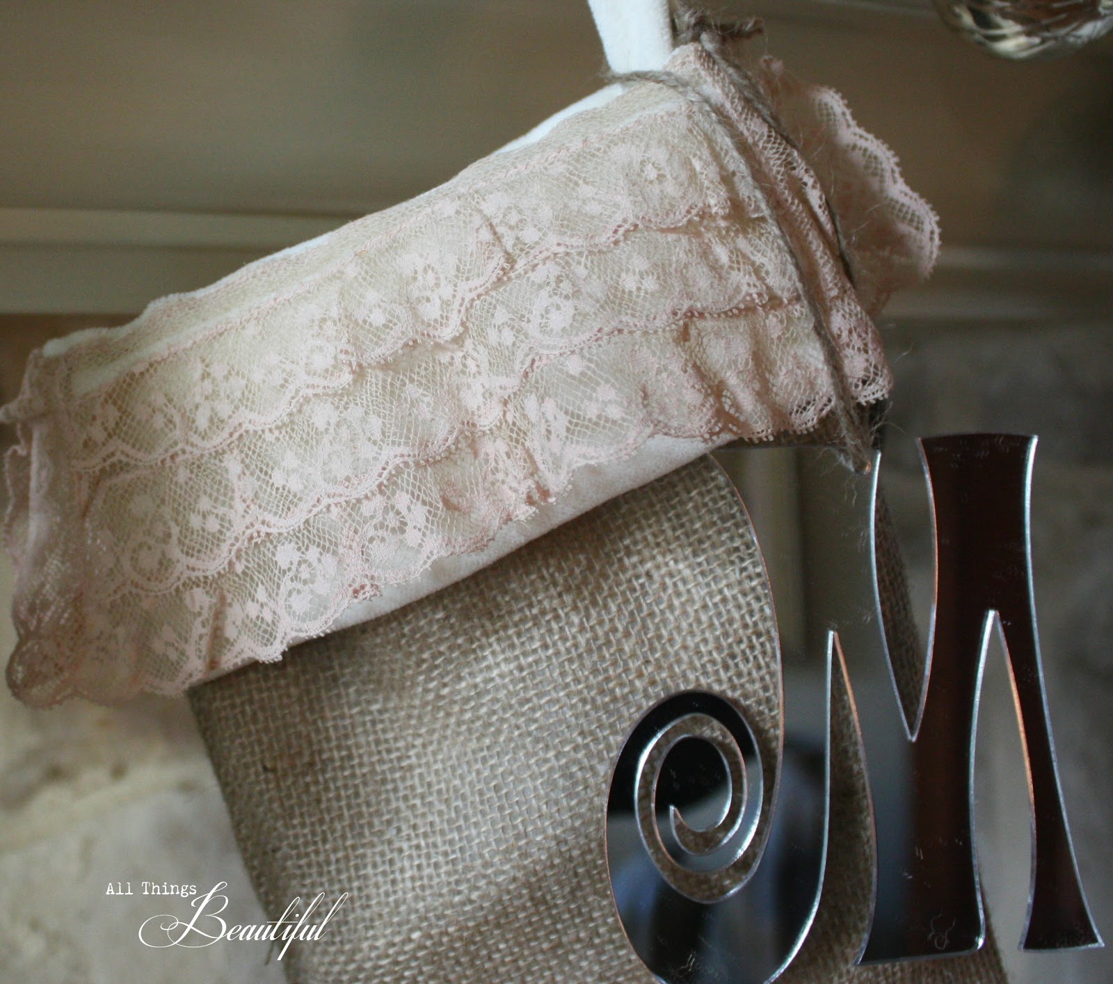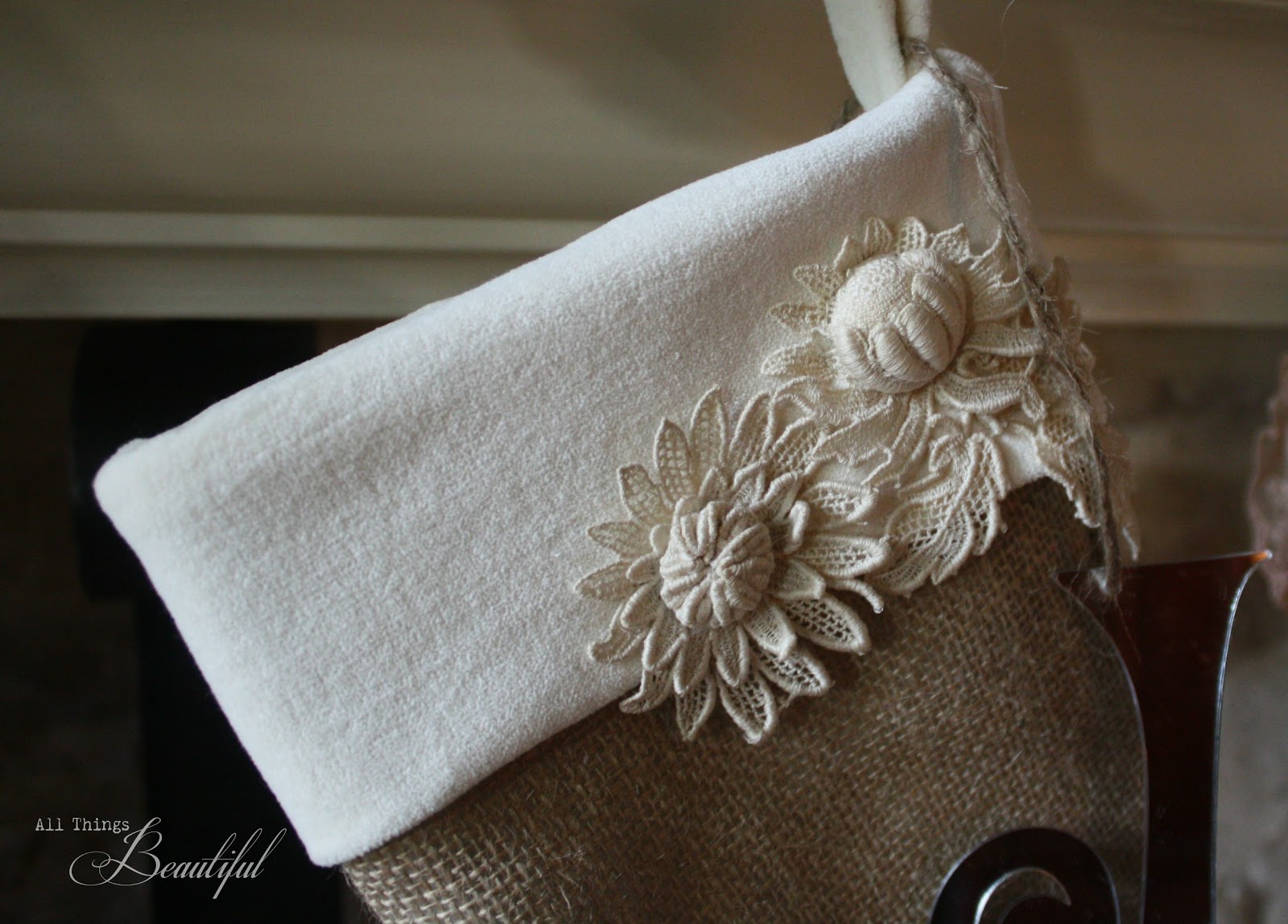 love the mix of lace, velvet with the burlap–beautiful stockings, janis!
