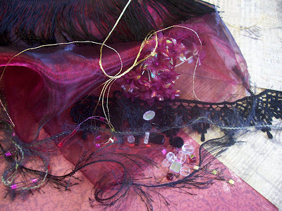 Also on the agenda for this week, I want to complete my ornament for my swap partner in the Handmade Ornament Swap that I am currently hosting. Here is a little teaser – all of these items shown here are somehow incorporated into the design. I have used many techniques and mediums and found lots of useful bits and bobs in my crafting box. Gosh, isn’t it amazing what we hoard when it comes to craft/art supplies. When i was designing my piece I decided that I could really use a few tiny Burgundy beads and sure enough, down in the dark depths of my very large craft box, I found exactly what I needed. I only wanted a few and that was all there was too.