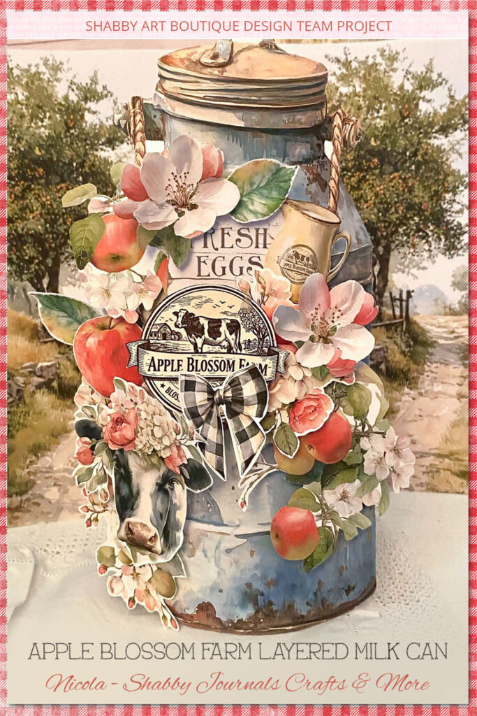 Using the milk can as her base, Nicola layered it up with pretty florals and farm-themed fussy cuts, creating a beautifully balanced piece while walking members through her process in an inspiration video.