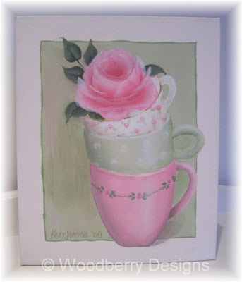 Wow, great to see some lovely pieces of art coming out of your makeshift studio. Those teacups, rose paintings are very feminine, soft and delicate looking. Yummy.
