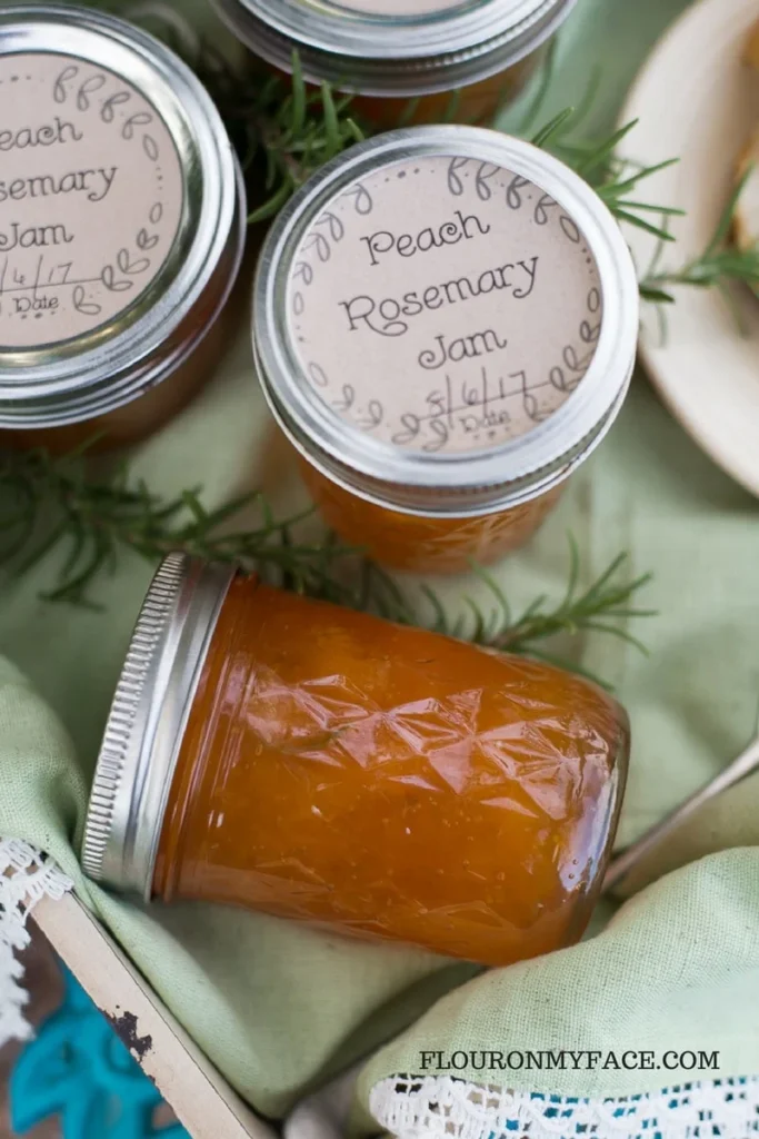 Arlene from Flour on My Face has shared a deliciously unique recipe for Peach Rosemary Jam.