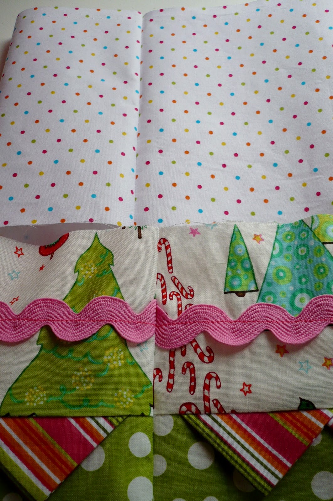 Stitch ric rac along the middle of the upper band.