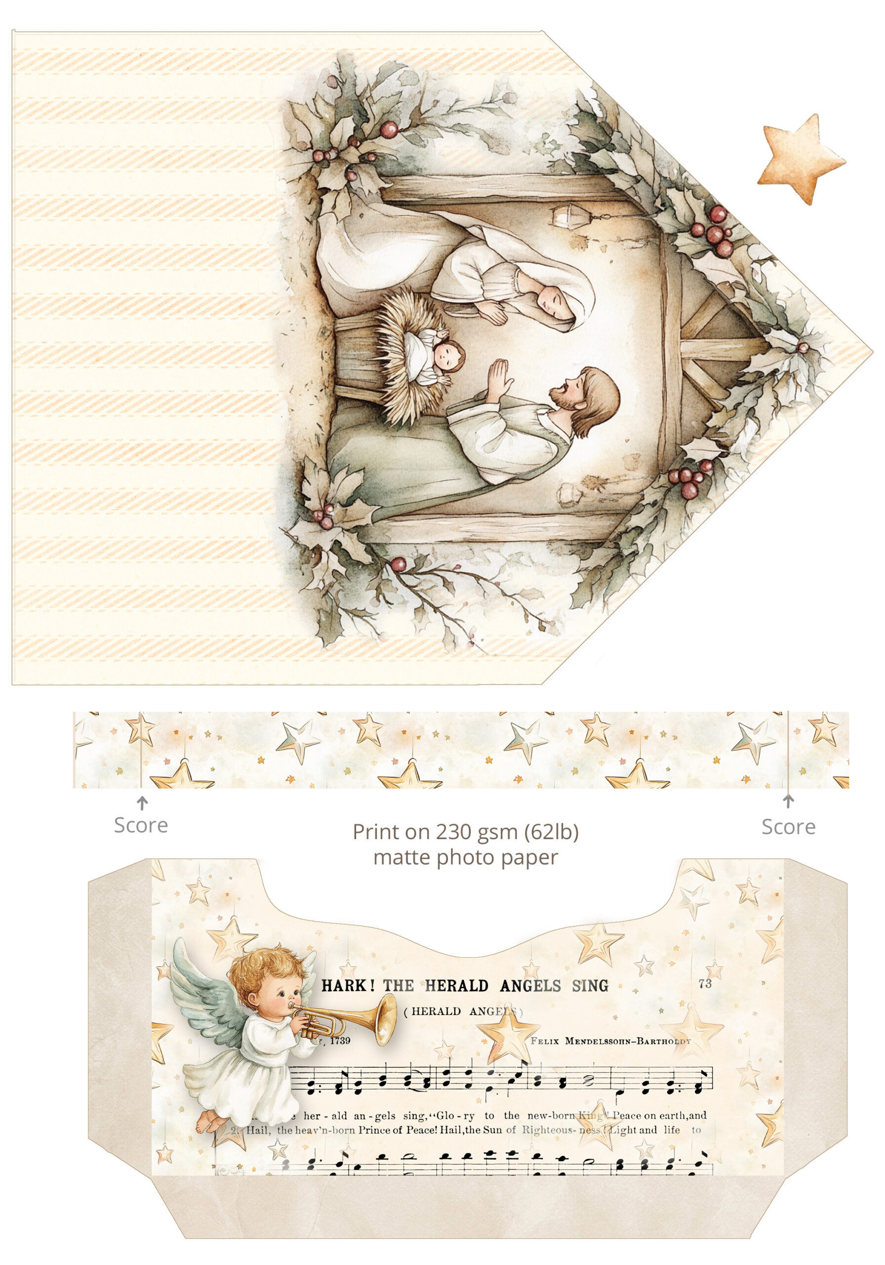 The Nativity Envelope Box Card is a beautifully simple project… just print, cut, assemble, and it comes together in the most charming way.